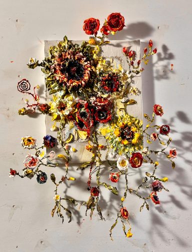 Bernd Schwarting (*1964 in Stade) studierte Bildende Kunst an der Hochschule für Bildende Künste Dresden sowie an der Hochschule der Künste Berlin und schloss sein Studium 1998 als Meisterschüler von Prof. Walter Stöhrer ab. Seine Werke, die eine dichte, fast eruptive Energie ausstrahlen, waren bereits in zahlreichen Einzel- und Gruppenausstellungen national wie international zu sehen, unter anderem im Museum Moderner Kunst Wörlen in Passau, der Kunsthalle Emden sowie im Bayerischen Nationalmuseum. In seinen Arbeiten lässt er aus einem tiefen, haptischen Farbauftrag heraus komplexe Bildwelten entstehen, in denen florale Strukturen und mythische Metamorphosen zu einer vibrierenden Einheit verschmelzen. Jüngst entwickelt er seine Technik weiter und somit entstehen nahezu dreidimensionale Landschaften und zauberhafte sowie lebendige Blumenbouquets. Seine Arbeiten sind in bedeutenden privaten sowie öffentlichen Sammlungen vertreten, darunter die Sammlung zeitgenössischer Kunst der Bundesrepublik Deutschland und die Stiftung Henri und Eske Nannen. Darüber hinaus wurde er mehrfach mit Preisen und Stipendien ausgezeichnet, wie dem Max-Ernst-Stipendium der Stadt Brühl im Jahr 1999 und dem Franz-Joseph-Spiegler-Preis im Jahr 2004. Zuletzt wurden seine Werke unter anderem in der Städtischen Galerie Schwabach (2023) sowie in der Galerie Schmalfuss in Berlin präsentiert. Bernd Schwarting lebt und arbeitet in Berlin und Jedelhausen (Neu-Ulm).